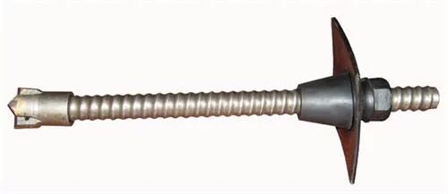 锚杆分为自进式注浆工艺技术,其结构组成则是由止浆塞、自进式钻头、螺母、连接套、垫板,还有最重要的一个是中空锚杆体。其中需要用的零件是钎尾式的连接套可以用来与手风钻相连,还有帮助注浆的接头。在那种岩层中可以保持长久支撑,不被破坏。它的外观很特别,中间空心结构,外部形成一种波纹型螺纹并凹凸不整。垫板结合螺母是对岩层的支撑能力起到更有效的结果。并将钻头安放在锚杆上,连接套便于锚杆体的长度增加和钻进